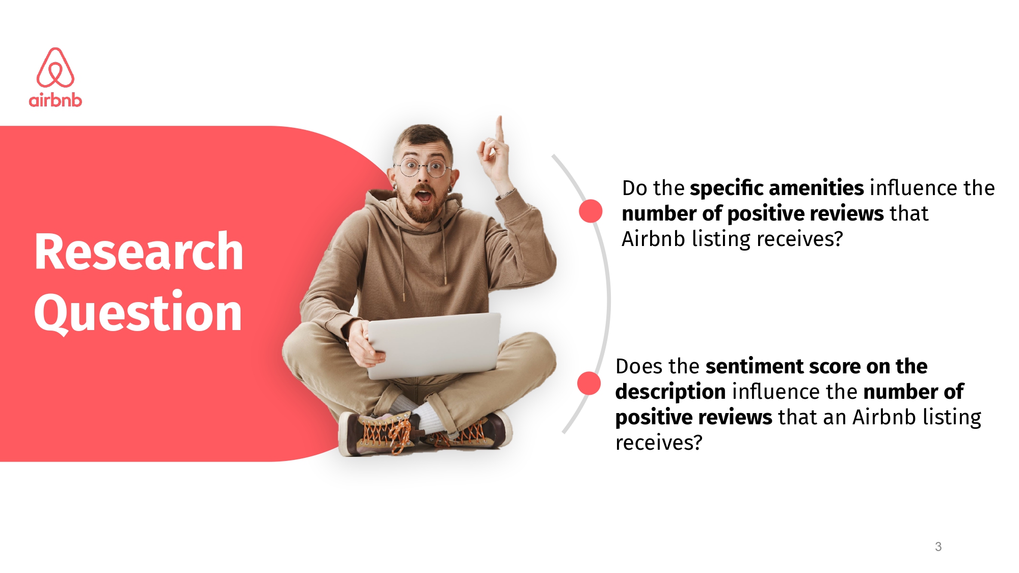 This project investigates how factors, such as amenities and description sentiment scores, influence the number of positive reviews on Airbnb listings in San Francisco. Our analysis helps Airbnb hosts optimize their listings to enhance guest experiences and improve competitiveness in a saturated market.