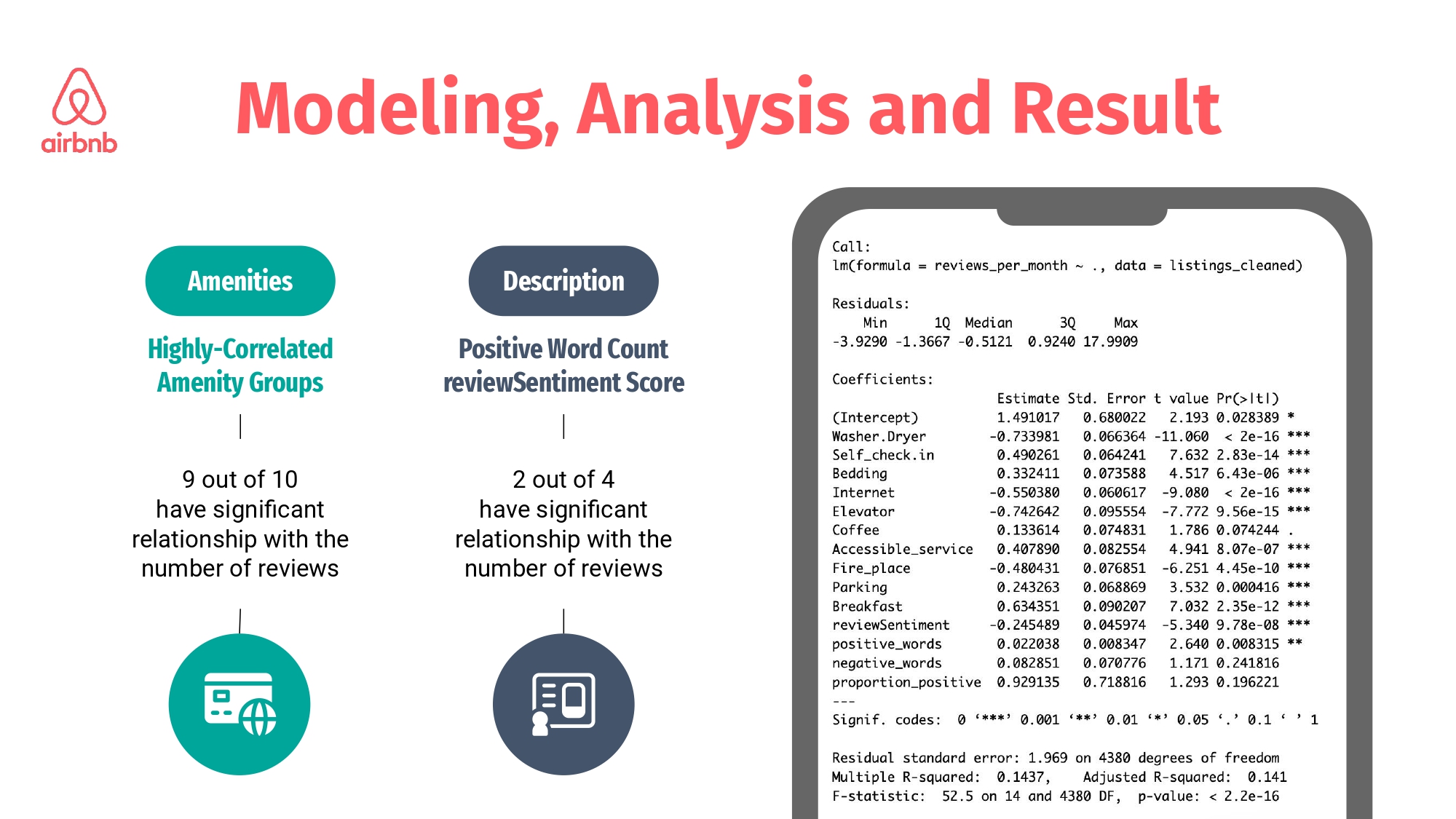 Identified essential amenities and descriptive elements that significantly influence positive guest reviews, providing actionable insights for hosts.