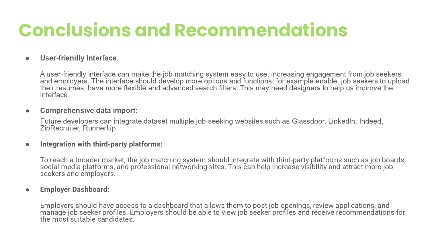 Our system is designed to significantly enhance the precision of matching job seekers with positions. This is expected to increase job satisfaction, improve the quality of hires, reduce employee turnover-related expenses, and foster career success.